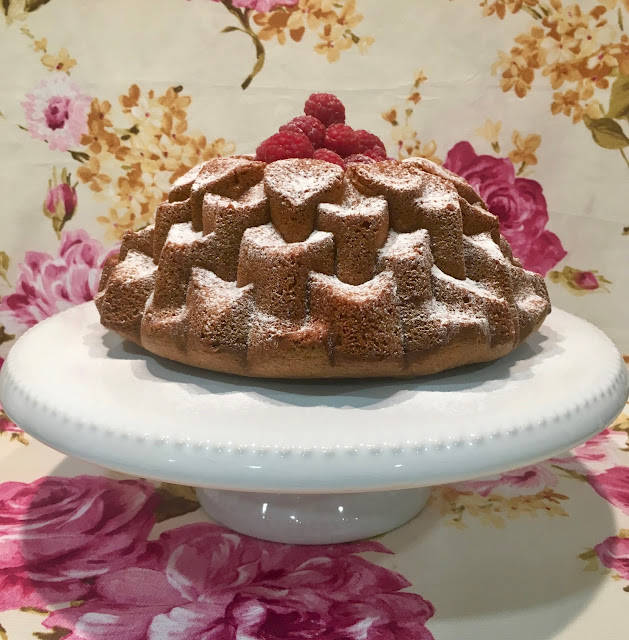 Para não "abusarmos" nos toppings, resolvemos utilizar esta forma de Bundt Cake da Nordic Ware em forma de flor. E, não é que ficou um bolo lindíssimo??